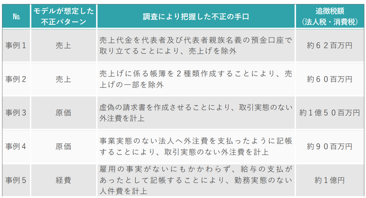 これにより、AIの予測モデルが想定した不正パターンと、実際に調査で把握した手口、そしてその追徴税額が初めて明らかにされたことになります。
