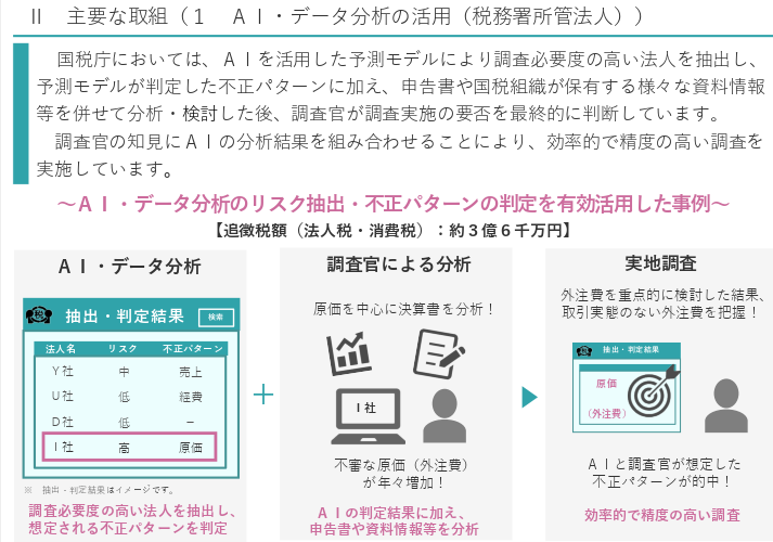 今回の発表で最も注目すべきは、国税庁が「AI・データ分析の活用」を初めて公表した点です。