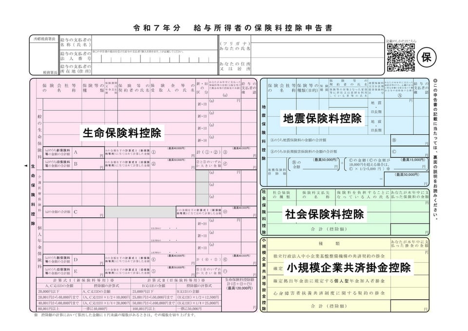 2025年年末調整 「給与所得者の保険料控除申告書」の書き方